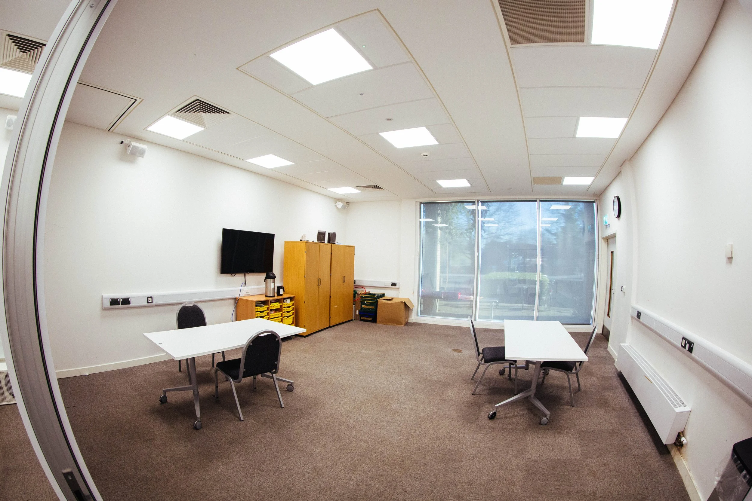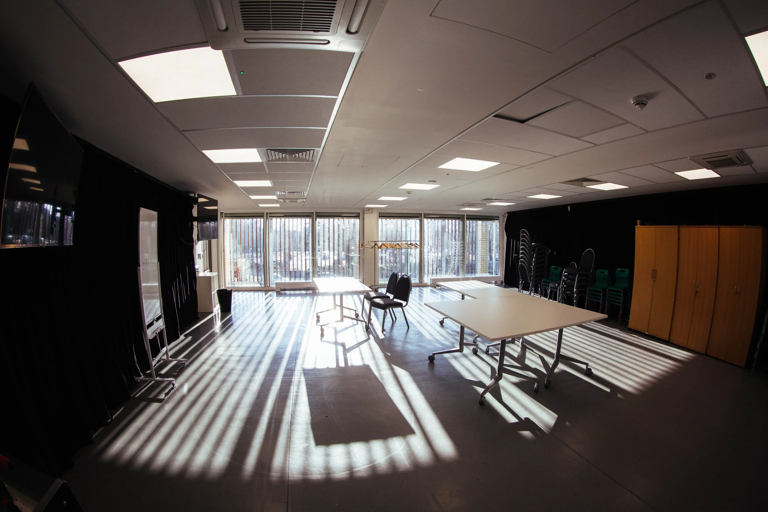 Spacious sprung-floor room with TV screens, built to support both active classes and professional sessions. Flexible layout accommodates groups of all sizes for meetings, workshops, or movement-based activities.